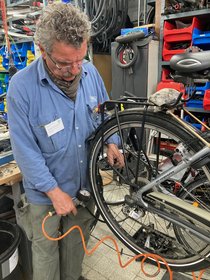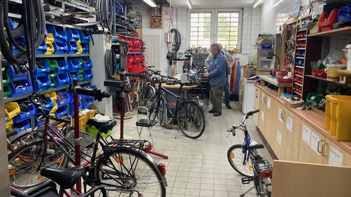 Ehrenamtliche in der Fahrradwerkstatt der Flüchtlingshilfe Aplerbeck engagieren sich bereits seit über zehn Jahren mit hoher Professionalität. Gut erhaltene, gespendete Fahrräder werden dort generalüberholt und anschließend weitergegeben. Zurzeit sind vor allem Kinderfahrräder gefragt, die auch an die nahe gelegene ZUE Dortmund weitergegeben werden.